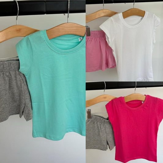 Girls Pyjama Pjs Set Plain Shorts Top T-Shirt Nightwear