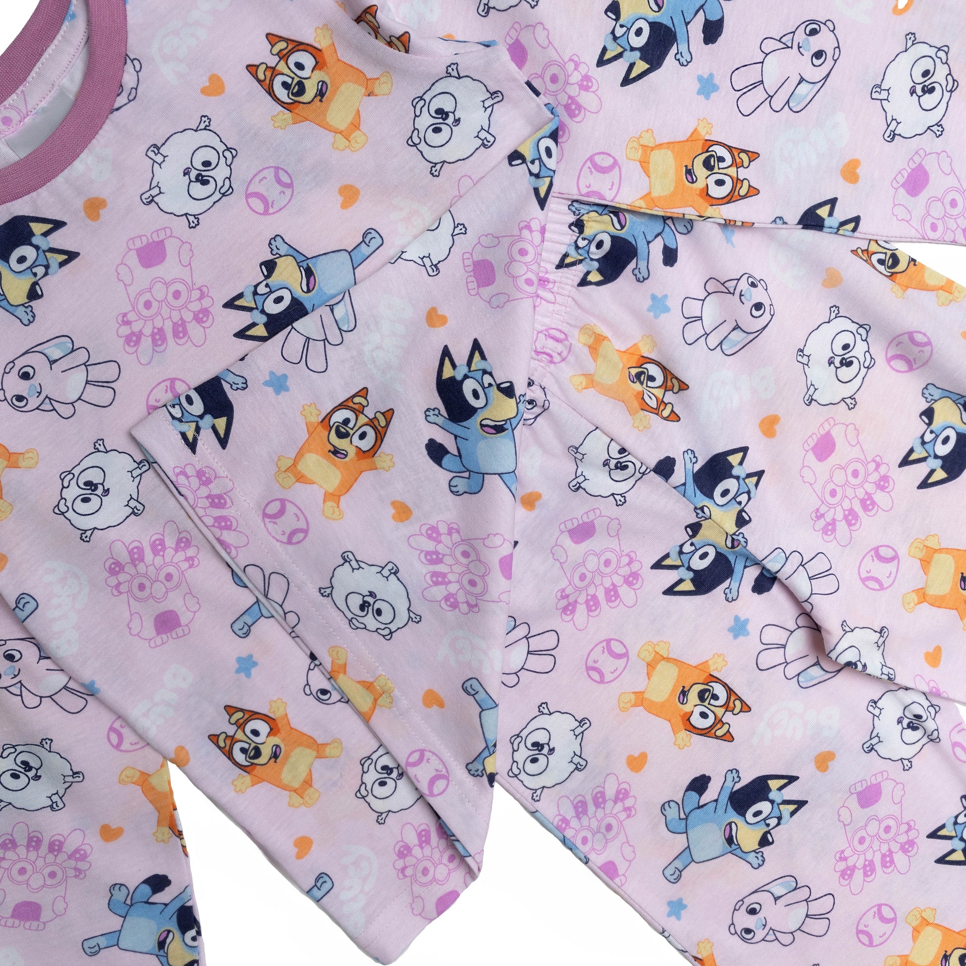 Keep bedtime fun and cozy with these Bluey Bingo pink trouser pyjamas for girls. Featuring long sleeves and a soft, comfy fit, they're perfect for toddlers who love adventures both day and night. The playful Bluey design adds a splash of joy to every sleepytime routine.