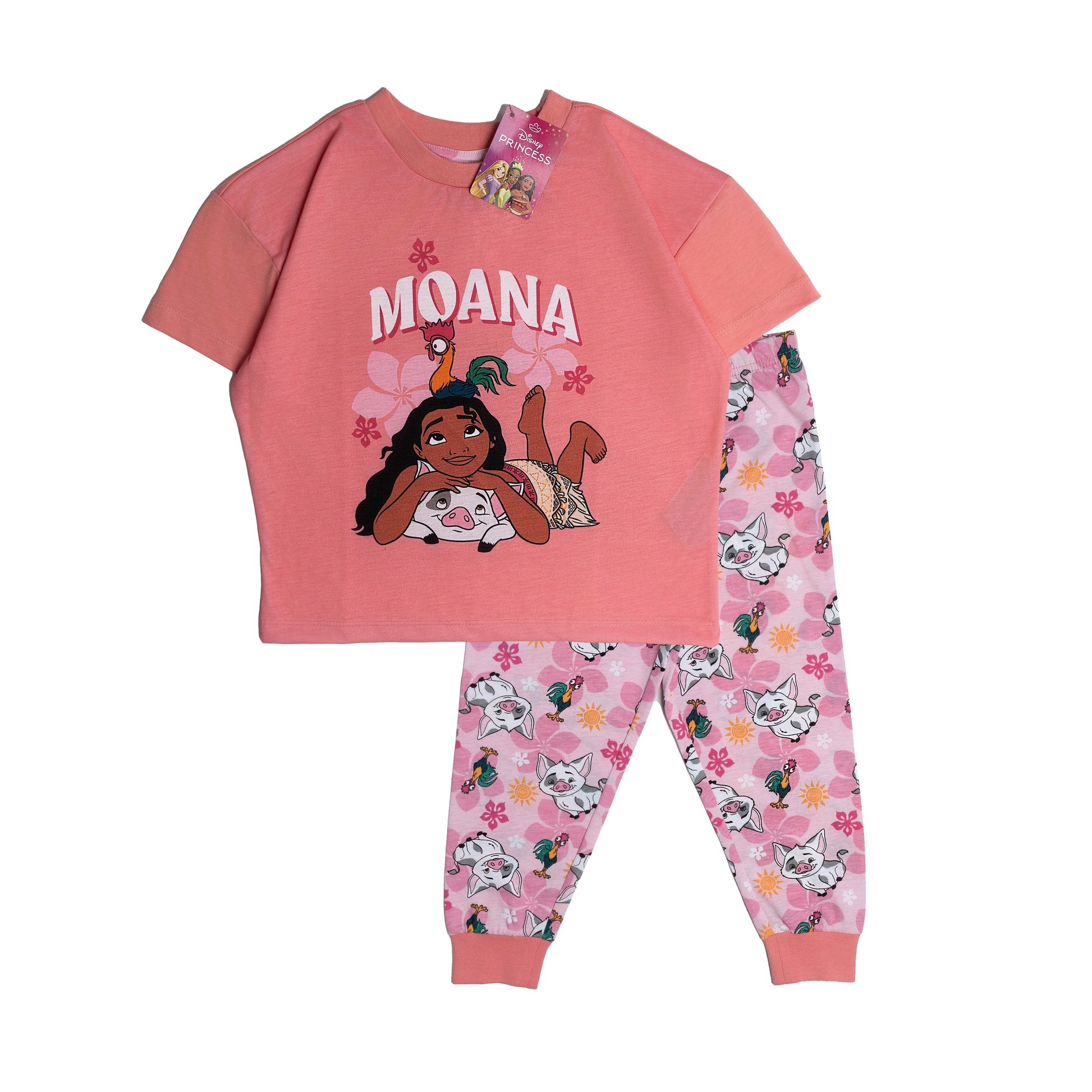 Let your little one drift off to dreamland in these playful Disney girls' pyjamas featuring Moana, HeiHei and Pua. The short-sleeve top and matching trousers offer comfy, breathable nightwear that’s perfect for warm nights. With charming characters from the beloved Disney world, bedtime just got a lot more fun!