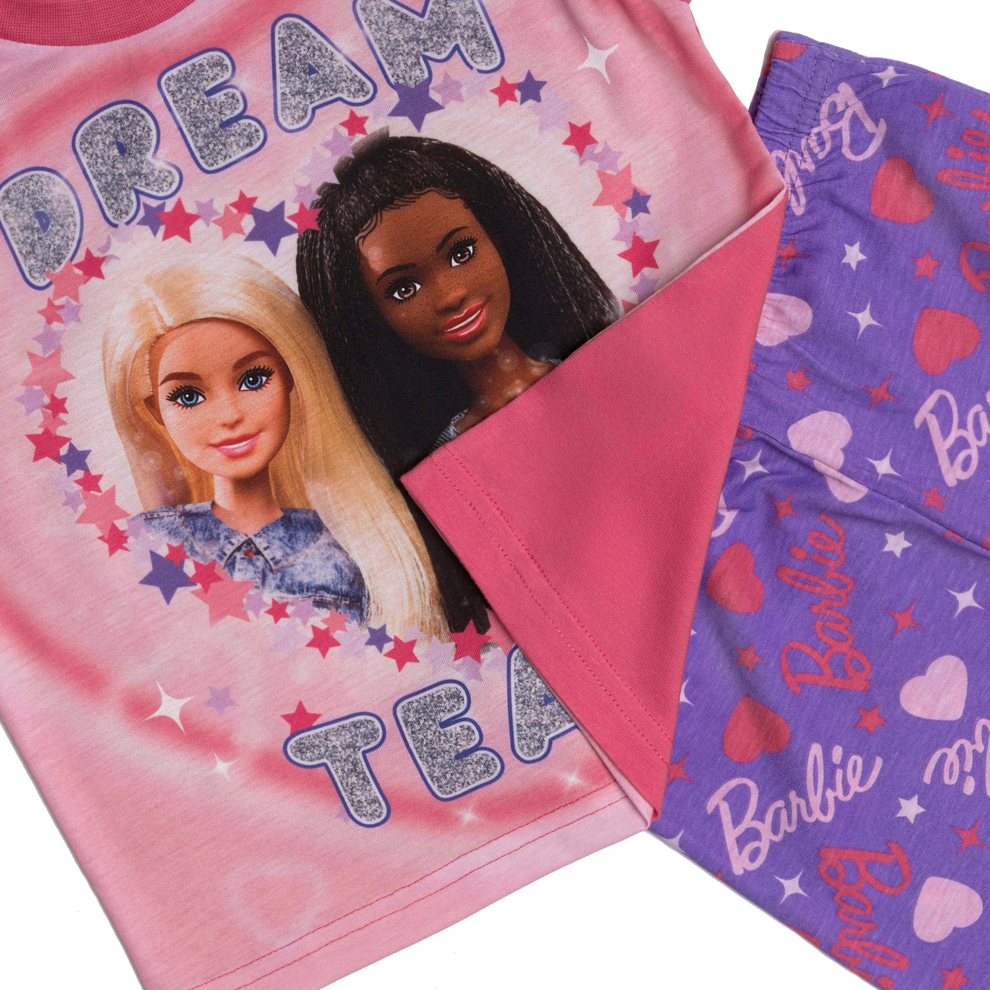 Let your little one drift off to dreamland in style with these playful Girls Barbie Pyjamas. Featuring a frilly top paired with comfy long trousers, this nightwear set combines fun and comfort perfectly. Soft fabric keeps bedtime cosy, while the charming Barbie design adds a touch of magic to every night. Perfect for sweet dreams and endless adventures!