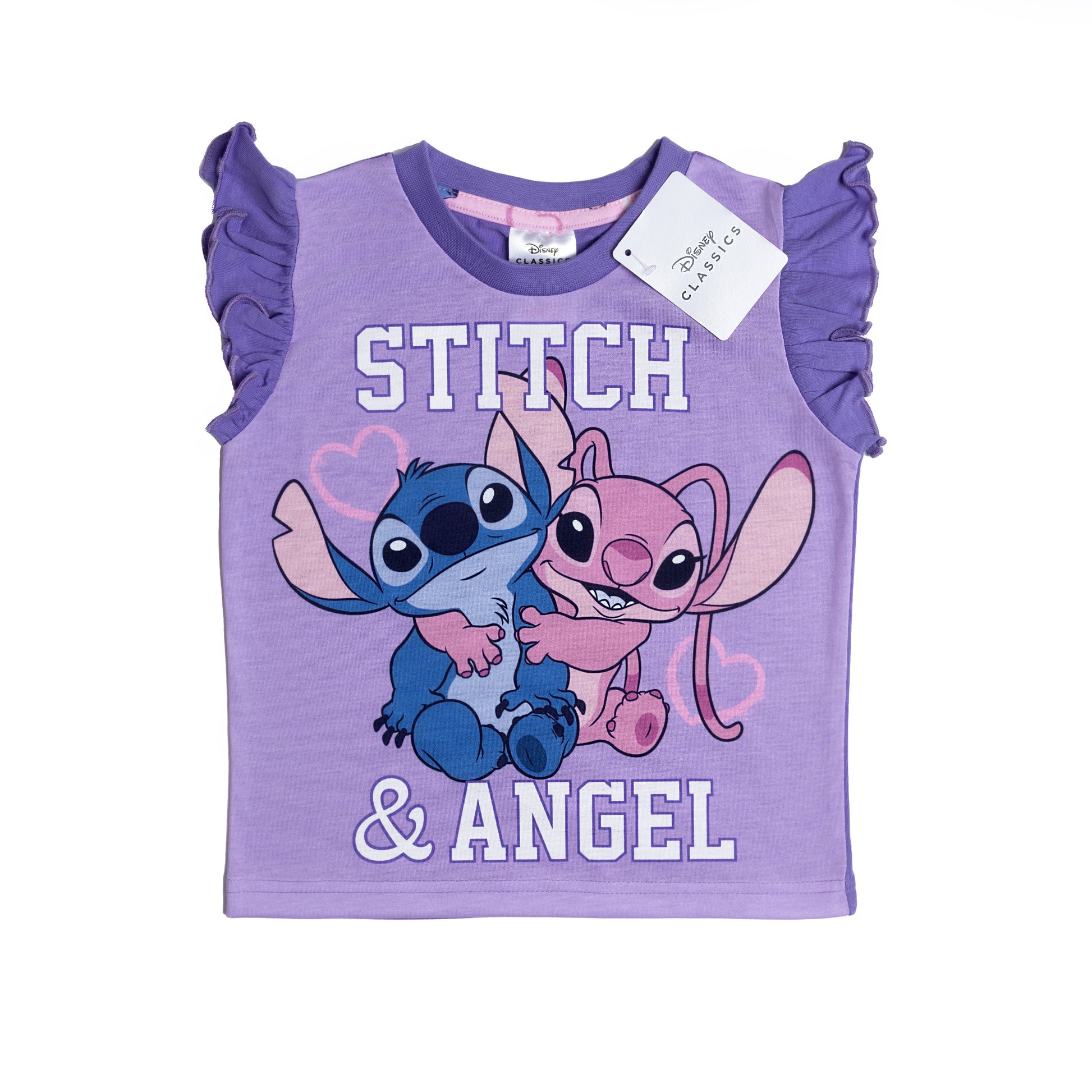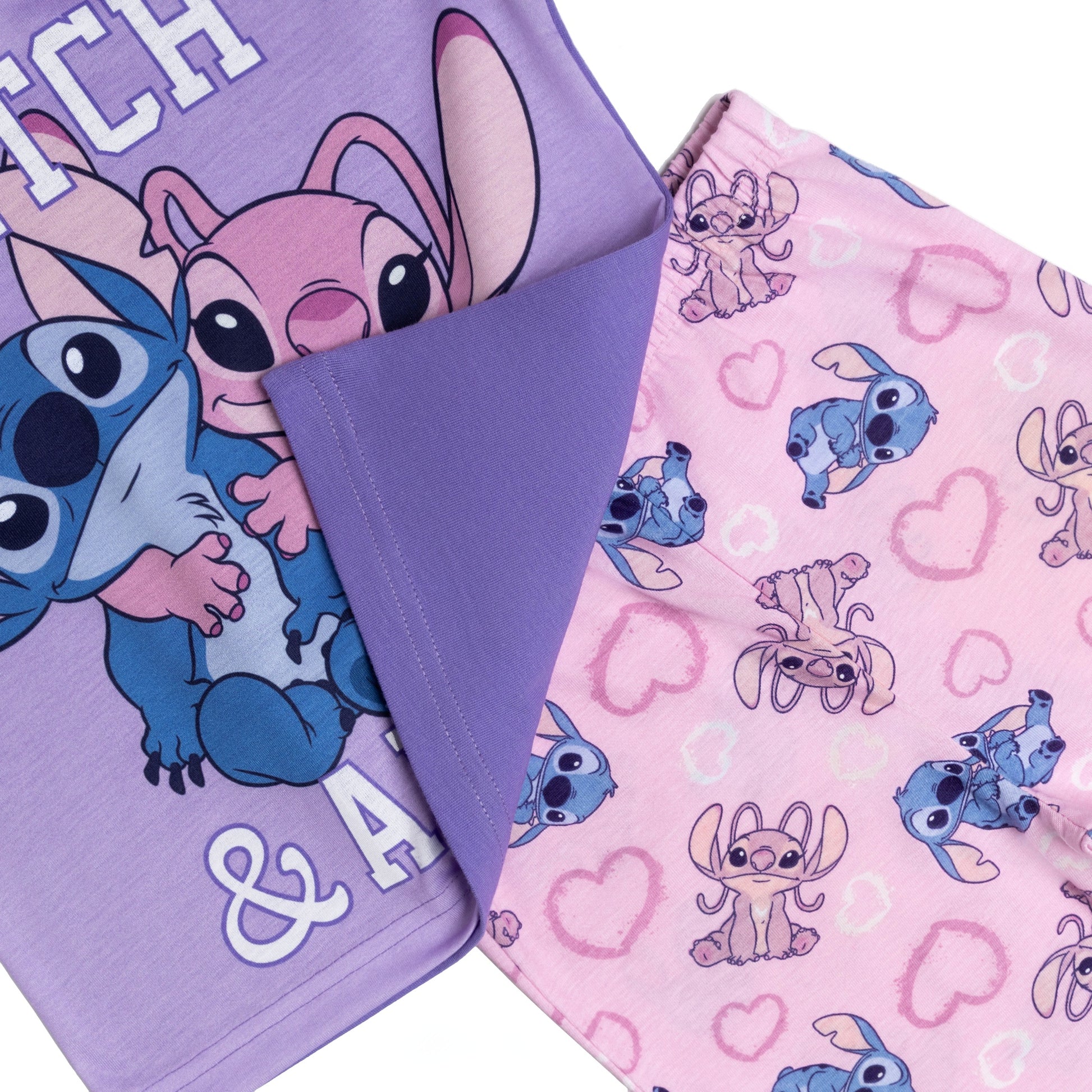 Fun Disney Design: Features beloved characters Stitch and Angel in a vibrant graphic print.